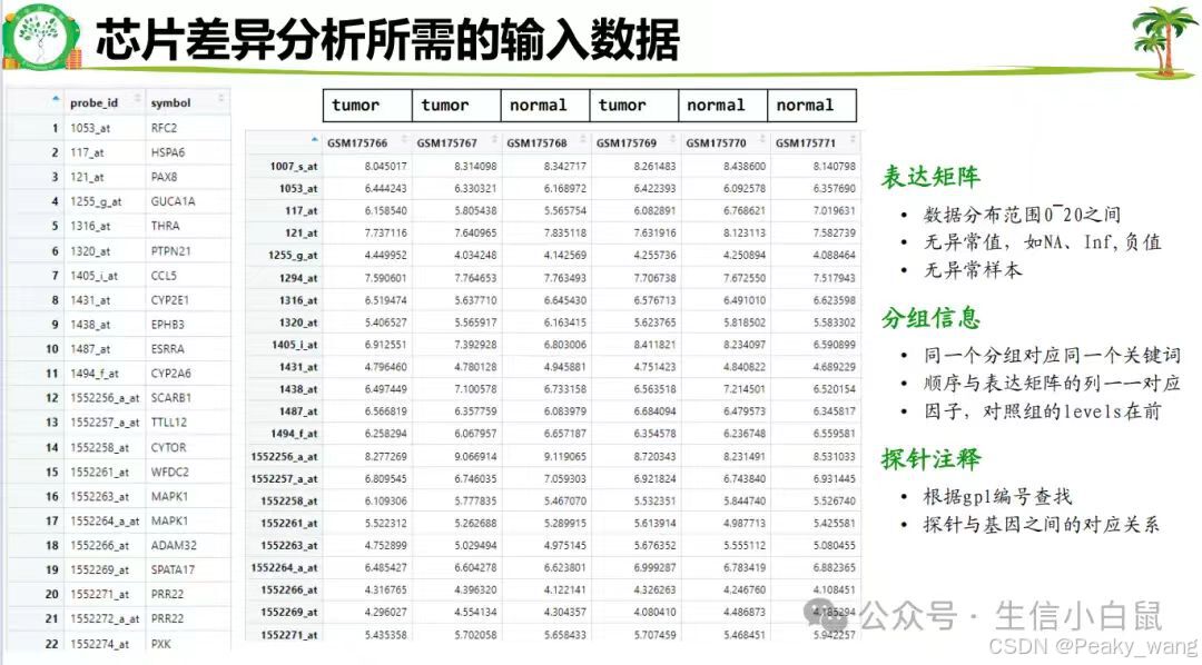 分析表达芯片的主要目的是获得差异基因,后续再进行功能富集等分析。基因表达芯片的原理在于利用芯片探针与mRNA的核酸杂交荧光机制,探索基因的表达量。